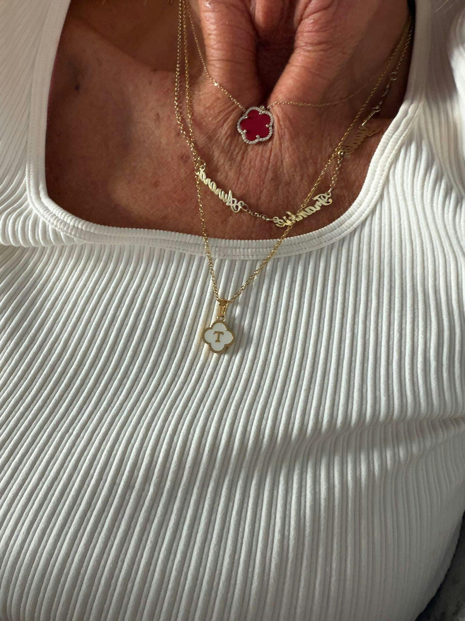 CLOVER INITAL CHARM NECKLACE, 18K GOLD PLATED STAINLESS STEEL, PERSONALISED PENDANT PERFECT FOR BIRTHDAY GIFT, 18K GOLD PLATED WATERPROOF JEWELLERY, MINIMALIST JEWELLERY