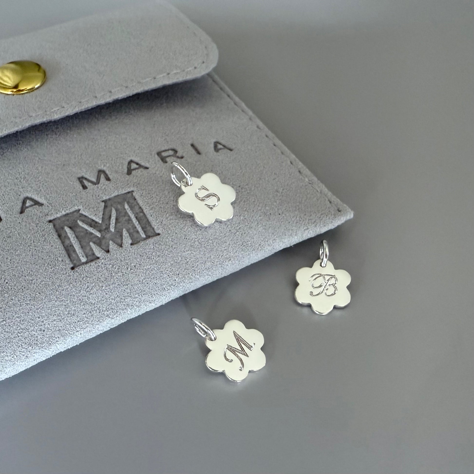 ENGRAVED INITIAL FLOWER CHARM FOR NECKLACE, STERLING SILVER PENDANT FOR NECKLACE, LETTER CHARM PENDANT, MONOGARM CHARM, GIFT FOR HER