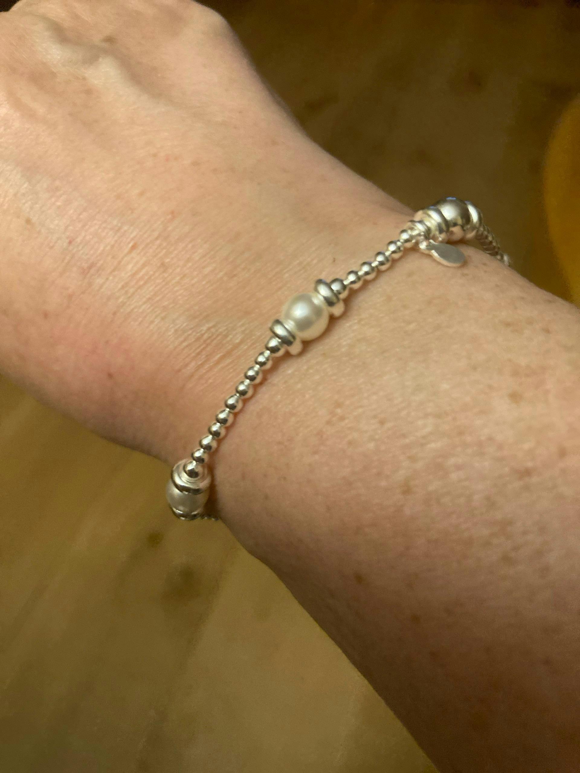 ~ Sarah pearl bracelet is a beautiful classic design. Perfect minimalist stacking bracelet that will suit most women and girls.